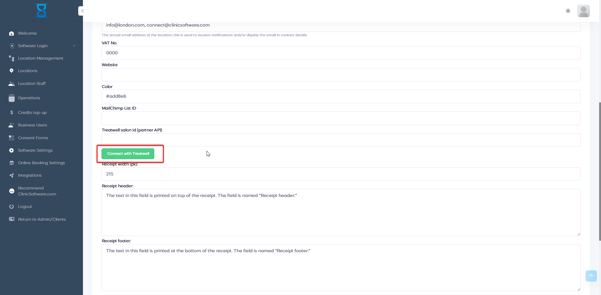 2.5. CONNECTING TREATWELL TO CLINICSOFTWARE.COM
